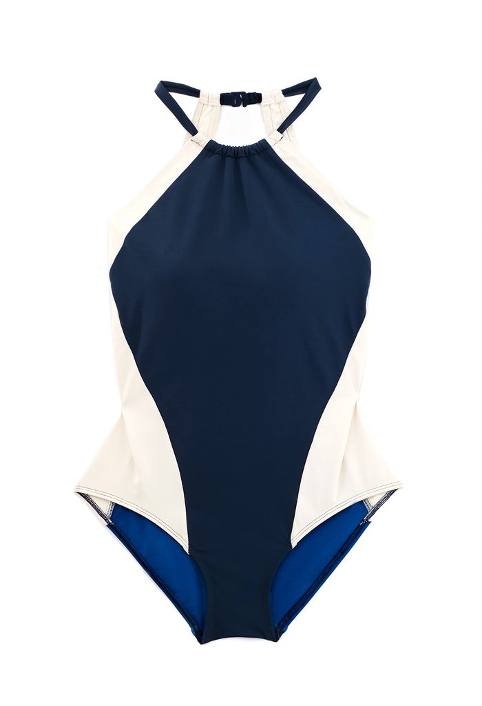 Useful for lounge or sport, the high neck and bold shape of the Nola is classic and sophisticated. Made from an Italian four-way stretch material that is anti-pill, anti-bacterial, chlorine resistant and quick-drying, it's perfect for being active in and out of the water. Proudly made in NYC.